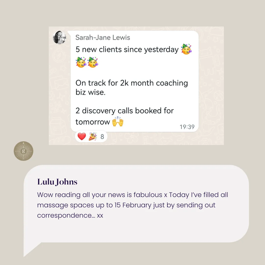 Followed by 4 days of morning prompts in a flowing WhatsApp, with other spiritual entrepreneurs who know the benefit of focused action and group support.